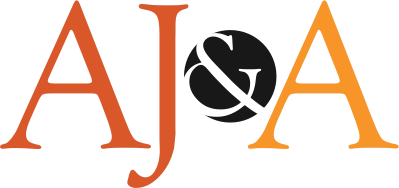 The logo uses the letters “A,” “J,” and “A” as dominant elements, with the ampersand (&) stylized within a central graphic. This creates a balanced, three-part design.