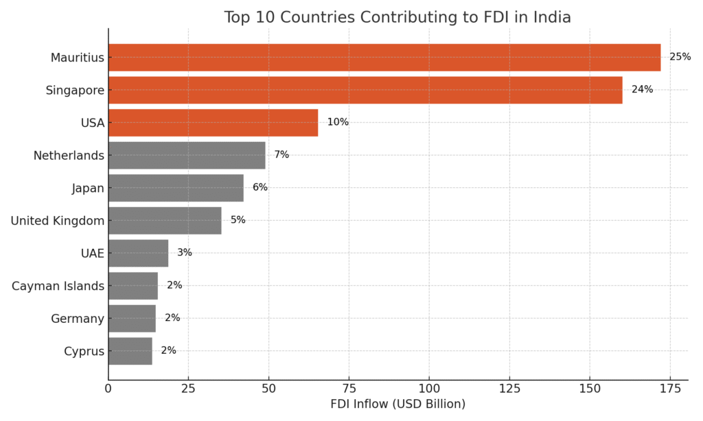 A series of such reforms undertaken since couple of decades has enabled India to be amongst the fastest growing economies in the World and it has consistently attracted highest foreign investments. In last twenty-five years, India has received a consolidated foreign direct investment (“FDI”) of USD 678 Billion. Out of which, over USD 450 Billion has been received merely in the past ten years. *Some important statistics will throw light on the facets of foreign investment in India.